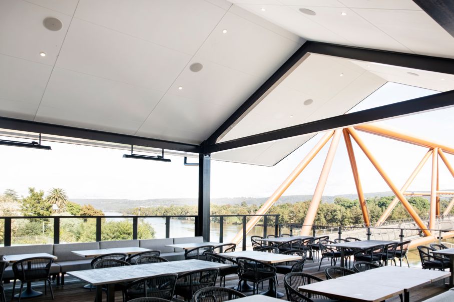 受原木屋酒店的啟發(fā),新的迭代忠實于建筑的標志性美學(xué)和目的。在現(xiàn)代方案中,該建筑保留了其酒吧和餐廳的功能,而鄰近的維多利亞大橋則被視為一種建筑影響,其沉重的石頭底座、